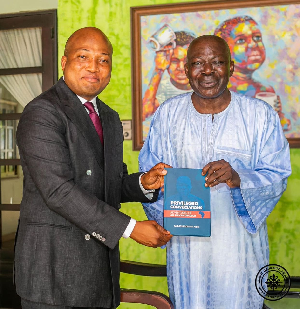 In a heartwarming encounter, Hon. Samuel Okudzeto Ablakwa, Member of Parliament for North Tongu and former Deputy Minister for Education in charge of Tertiary Education, met with the illustrious Ambassador D.K. Osei, a retired diplomat with a storied career. Ambassador Osei, who served as Secretary to President John Agyekum Kufuor from 2001 to 2009, graciously hosted Ablakwa, imparting his profound insights and gifting him an autographed copy of his book, “Privileged Conversations — Adventures of an African Diplomat.”