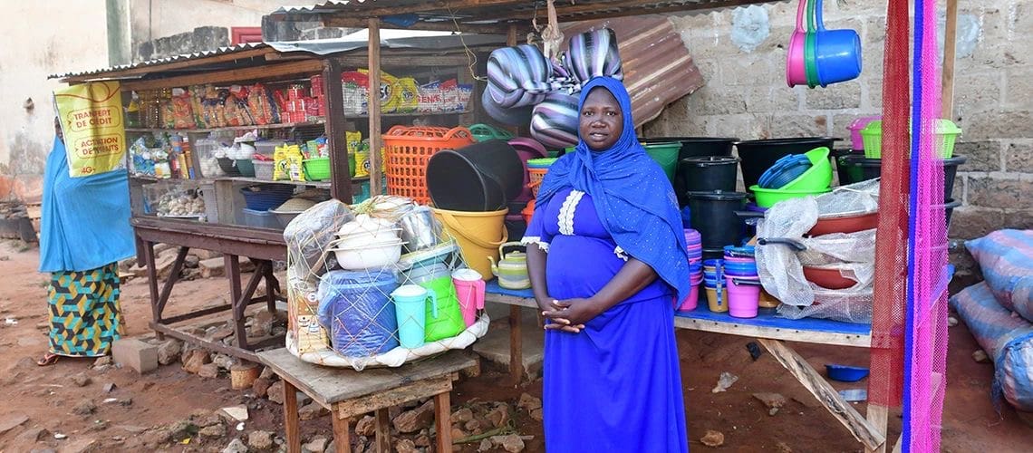 A social safety net beneficiary in front of her retail business, Togo. Credit: Christophe Mawunou