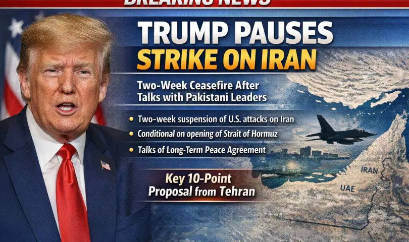 Washington, D.C., April 7, 2026 : In a dramatic late‑evening announcement, President Donald J. Trump said he has agreed to suspend planned U.S. military strikes against Iran for a two‑week period, following what he described as urgent appeals from Pakistan’s top civilian and military leadership.