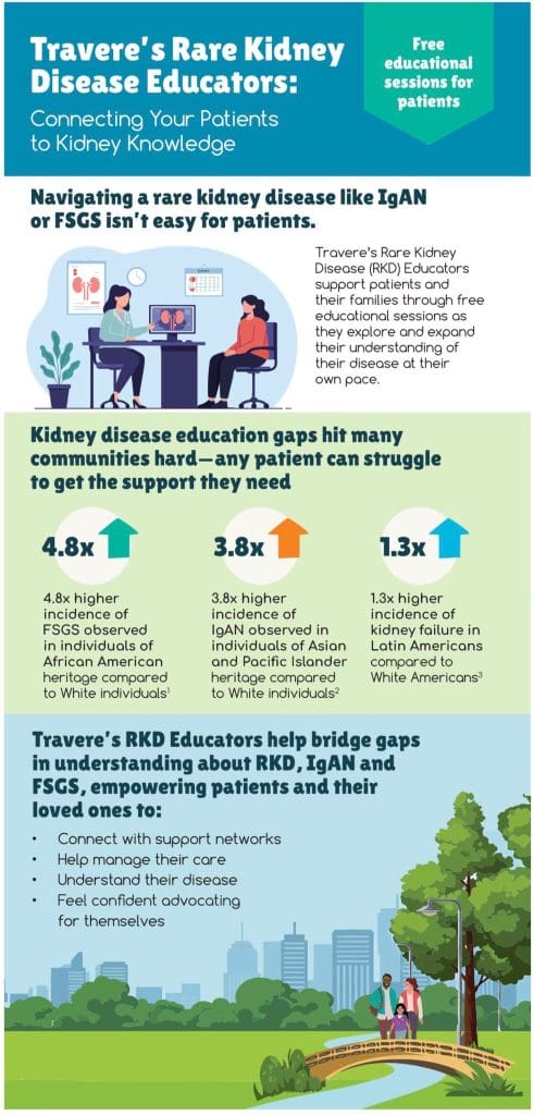 Rare kidney diseases often unfold quietly, leaving patients and families searching for answers, clarity, and support. For many in our community—especially those of African, Asian, Pacific Islander, and Latin American heritage—the burden of these conditions is heavier, the risks higher, and the path to understanding far more complicated. This is why the work of Travere’s Rare Kidney Disease (RKD) Educators has become an essential lifeline for patients navigating illnesses such as IgA Nephropathy (IgAN) and Focal Segmental Glomerulosclerosis (FSGS).