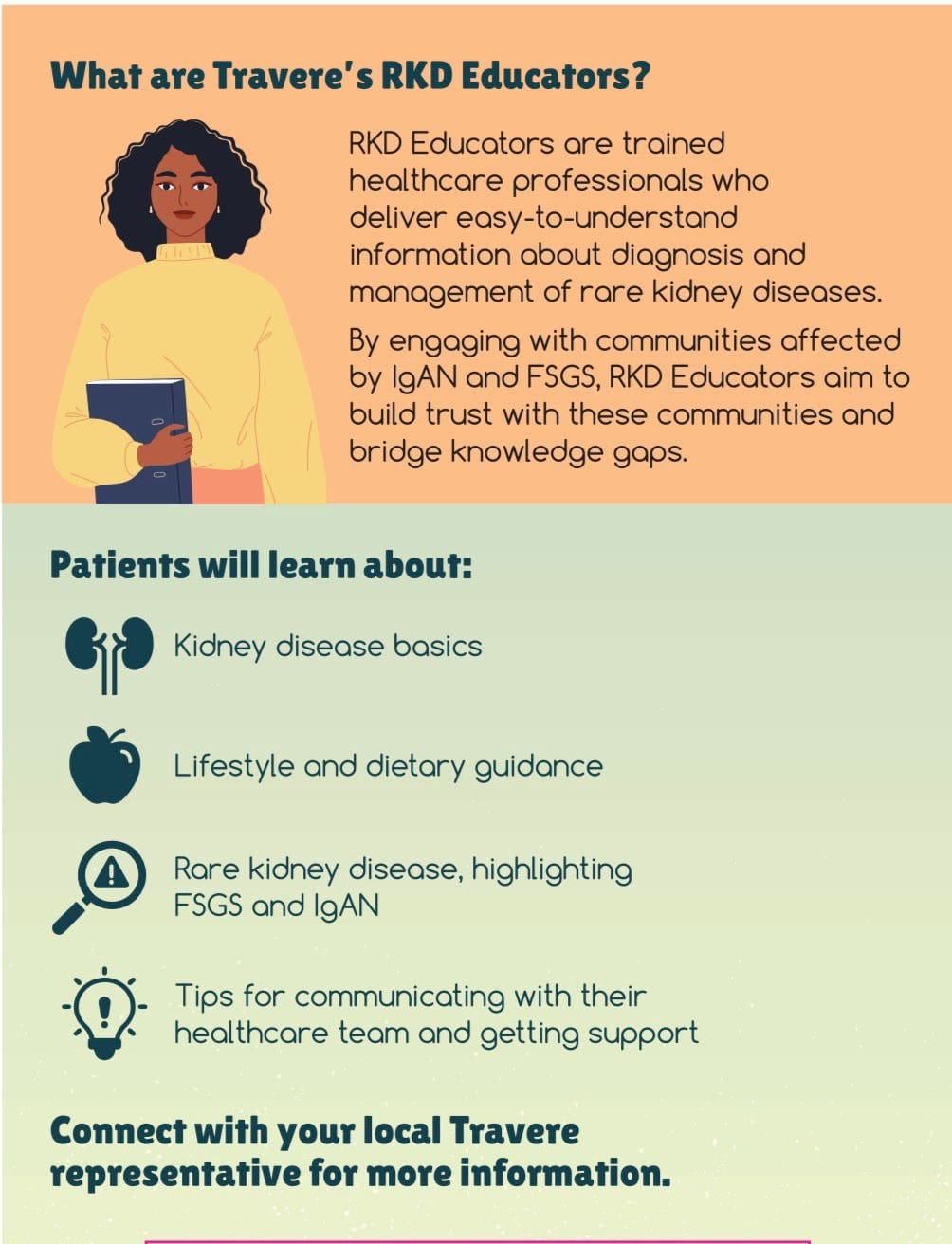 For more information or to connect with an RKD Educator, reach out to your local Travere representative. Empowerment begins with understanding, and understanding begins with access to the right information.