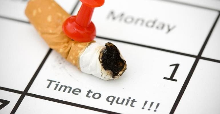 The benefit of stopping tobacco use starts on day 1 of stopping tobacco and these health benefits are sustained throughout the lifetime. Within 20 minutes of stopping smoking, the heart rate and blood pressure reduces. After 12 hours, the carbon monoxide levels in the blood normalises. After 2 weeks to 3 months of quitting, the circulation improves and lung function increases. After 1 year of quitting smoking, the excess risk of coronary heart disease is half that of someone who still smokes. After 5 years of quitting smoking, risk of cancers of the mouth, throat, oesophagus, and bladder is cut in half. In fact, within 10 years of stopping tobacco use, the risk of dying from lung cancer is reduced by 50% to that of a person who is still smoking.
