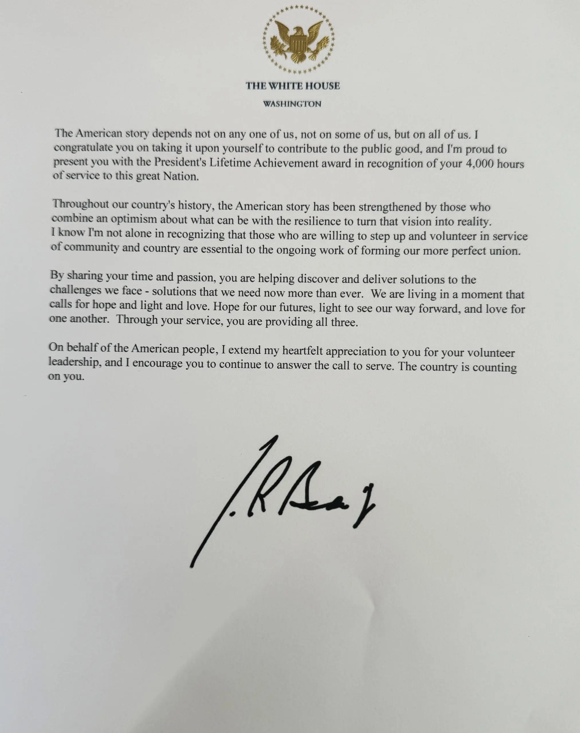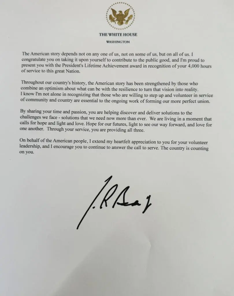 Congratulations on receiving the President’s Lifetime Achievement Award! Your selfless dedication to our community is truly inspiring. Your hard work and commitment have not gone unnoticed. Well-deserved!