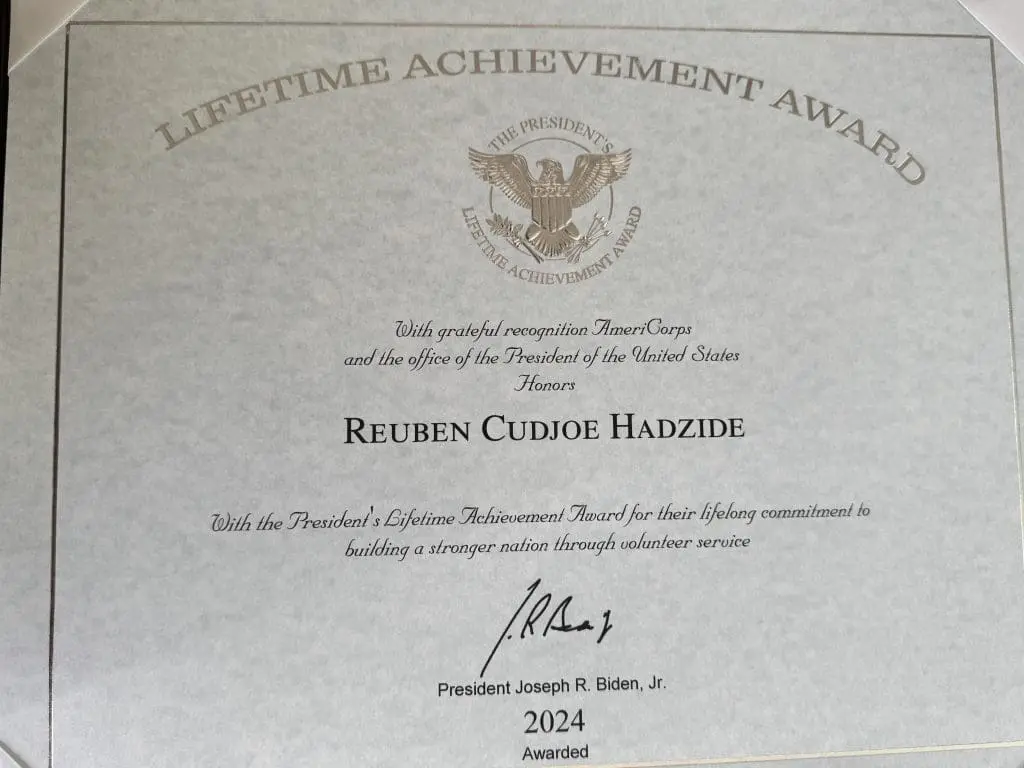 In a moment of profound recognition, AmeriCorps and the Office of the President of the United States have honored Reuben Cudjoe Hadzide with the President’s Lifetime Achievement Award. This prestigious accolade celebrates his unwavering commitment to building a stronger nation through volunteer service.