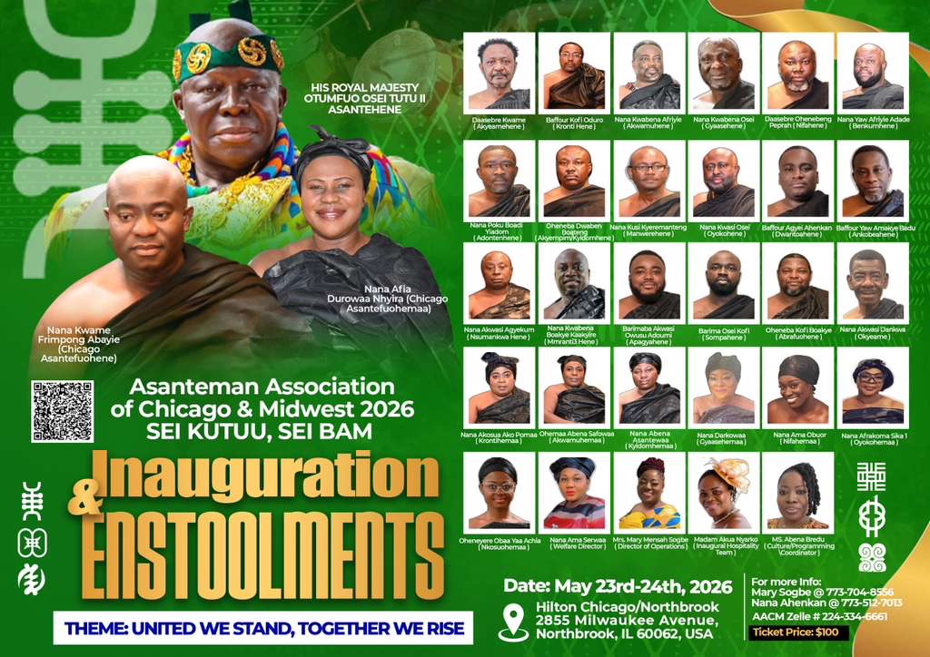 The Asanteman Association of Chicago & Midwest has officially launched a vibrant and heartfelt fundraising campaign in anticipation of one of its most culturally significant events: the Outdooring of its newly enstooled Chief, Queen Mother, Subchiefs, and Subqueens. Set to take place in May 2026, this majestic ceremony will honor tradition, unity, and leadership within the Ghanaian diaspora. The leadership , elders and members are rallying together to make it unforgettable.