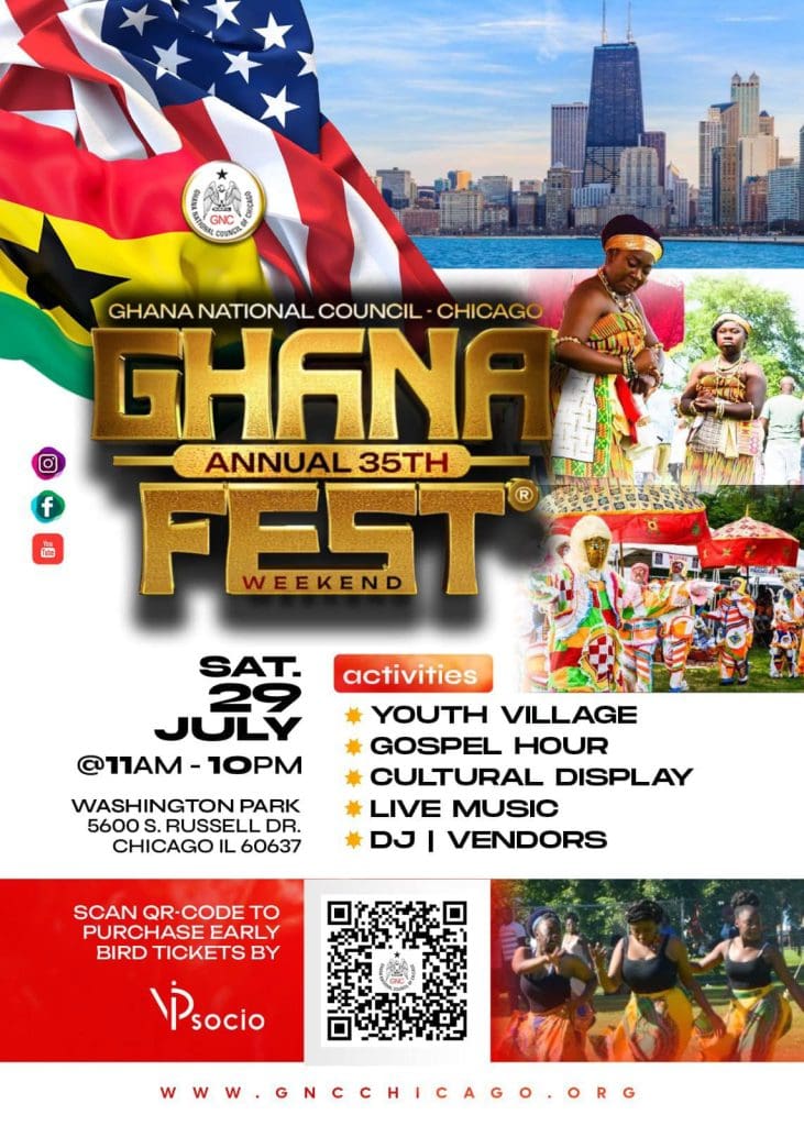 Chicago, IL, June 2nd: The Ghana National Council of Metropolitan Chicago (GNC) and its Affiliates (tribes) will present its flagship program, the 35th Annual Ghanafest, in Washington Park on July 29 from 11:00 AM until 10:00 PM. The “Forward Together” themed event is the most prominent display of authentic Ghanaian culture in the Midwest.