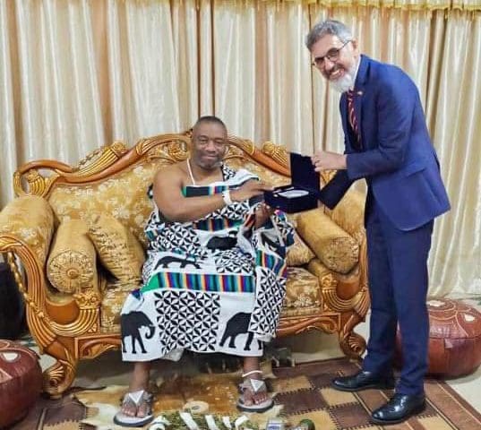 In a gesture of goodwill and cooperation, the Turkish Ambassador to Ghana, H.E. Hüseyin Güngör, paid a courtesy call on King Tackie Teiko Tsuru II, the Ga Mantse. During the visit, Ambassador Güngör commended the King for his tireless efforts in driving development and spearheading numerous social projects in the traditional area.